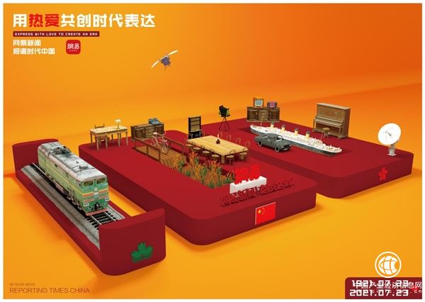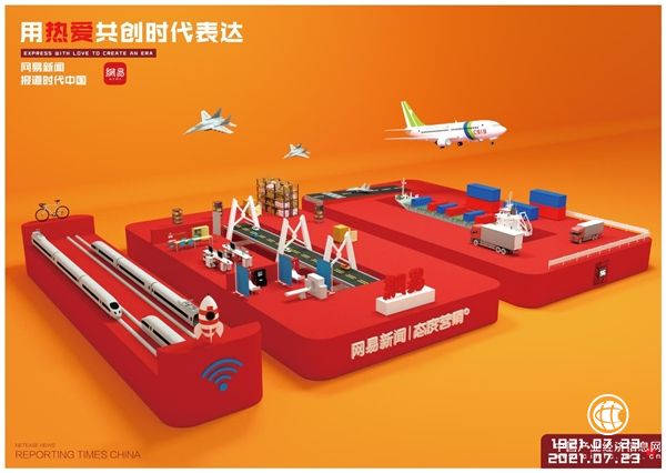 创意思想:设计以数字100为画面基础,展示党的百年建设部分成果,结合网易特点,报道时代中国的发展与辉煌。