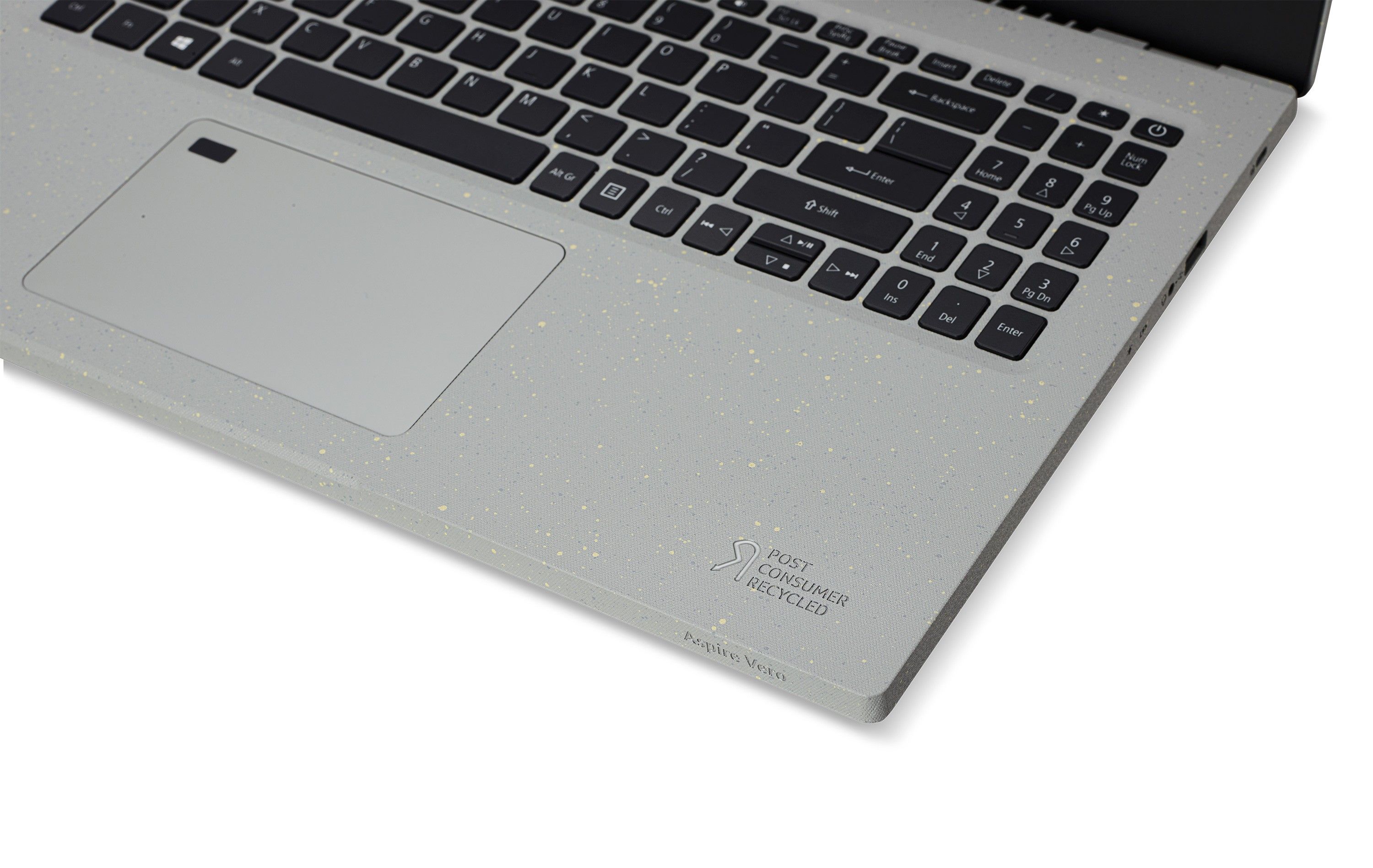 宏碁Vero蜂鸟·未来 环保版作为宏碁首款环保概念笔记本,除了机身采用30%PCR材质,键盘采用50%PCR材质外,显示屏更使用超过99%的可回收面板,此举相较于使用原生塑料的笔记本,每台减少了约21%的碳排放。同时为减少污染,机身表面并未使用涂料,而是展现材料本身颜色,星空灰点缀黄色斑点,轻快之中充满活力,并且不含VOC,减少对于环境污染与资源浪费并保证用户使用健康。