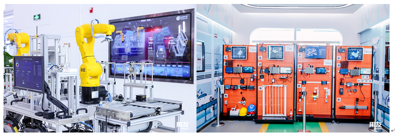 场景之一的用友BIP|智能制造示范产线,演示的是离散制造业的无人生产过程,实时联通数据、全面管控生产,从而完成智能制造。