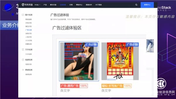 在易盾官网,我们为企业客户提供了免费的网页版“内容检测”体验,其中涉及到的内容非常多,比如广告过滤、色情过滤、暴恐过滤。以下是两张检测结果示例: