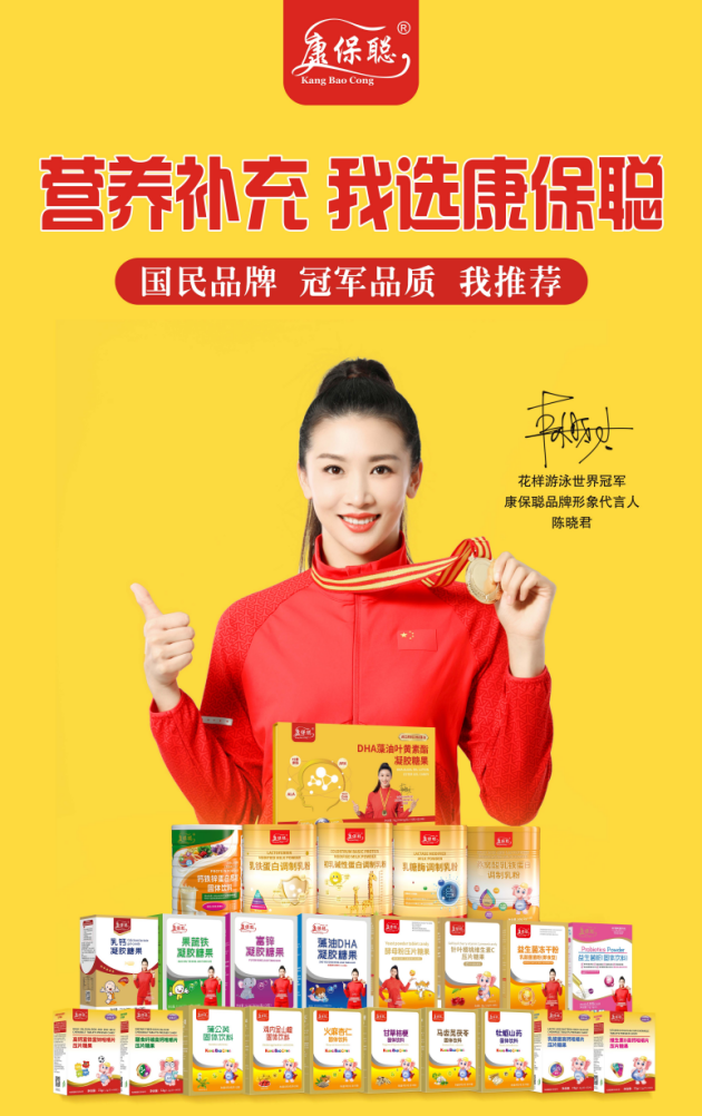 陈晓君表示,康保聪是个很棒的营养品品牌,作为中国体育健儿,她愿意把康保聪分享给中国万千宝宝,希望他们都能够身强体健,将来拥有冠军一般的人生。