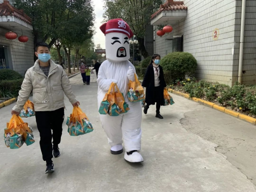 接着粥员外古城街店老板亲自驱车来到敬老院,送来了80余份粥品+小食,并笑着和我们说道:“必须支持呀!暖粥都是清晨现熬2小时的,热乎乎的,希望老人们能喝的开心!能为公益活动尽一份绵薄之力,我也深感荣幸!”