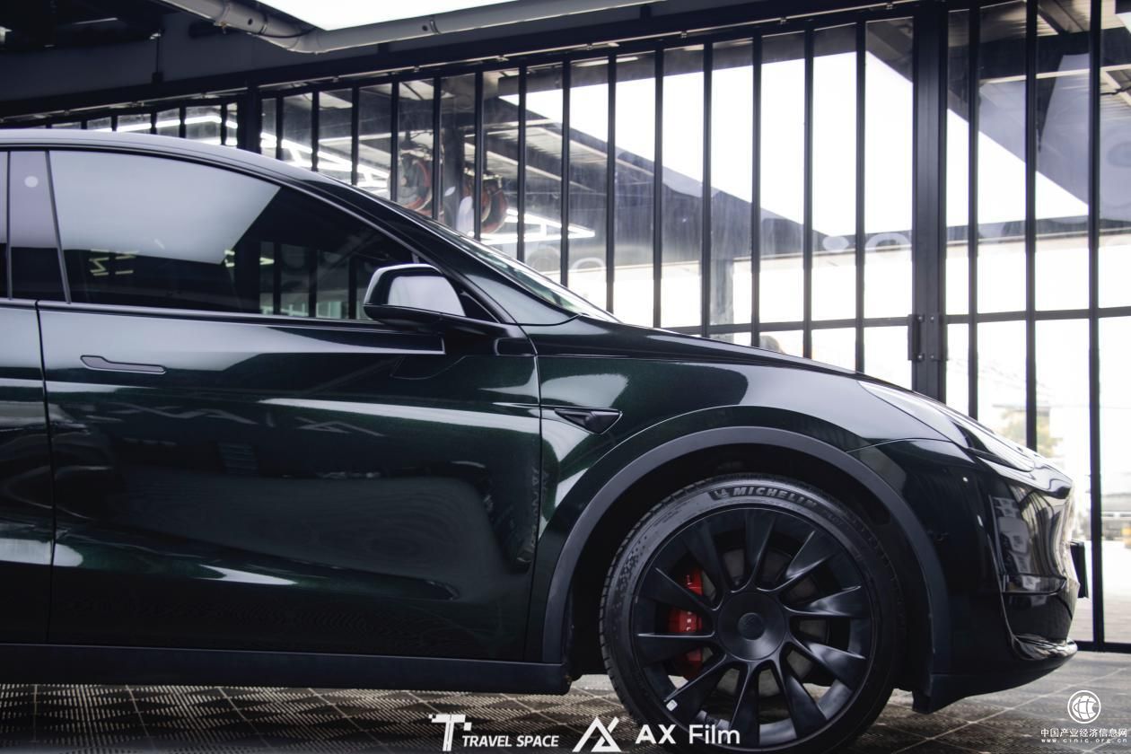无论什么价位,看起来更豪华、更高级的车总是能更得人心,因此我们给特斯拉ModelY贴的改色膜,还不能太普通,得可以彰显特斯拉本身以及特斯拉车主的尊贵气质,而AX祖母石绿改色膜就很符合。