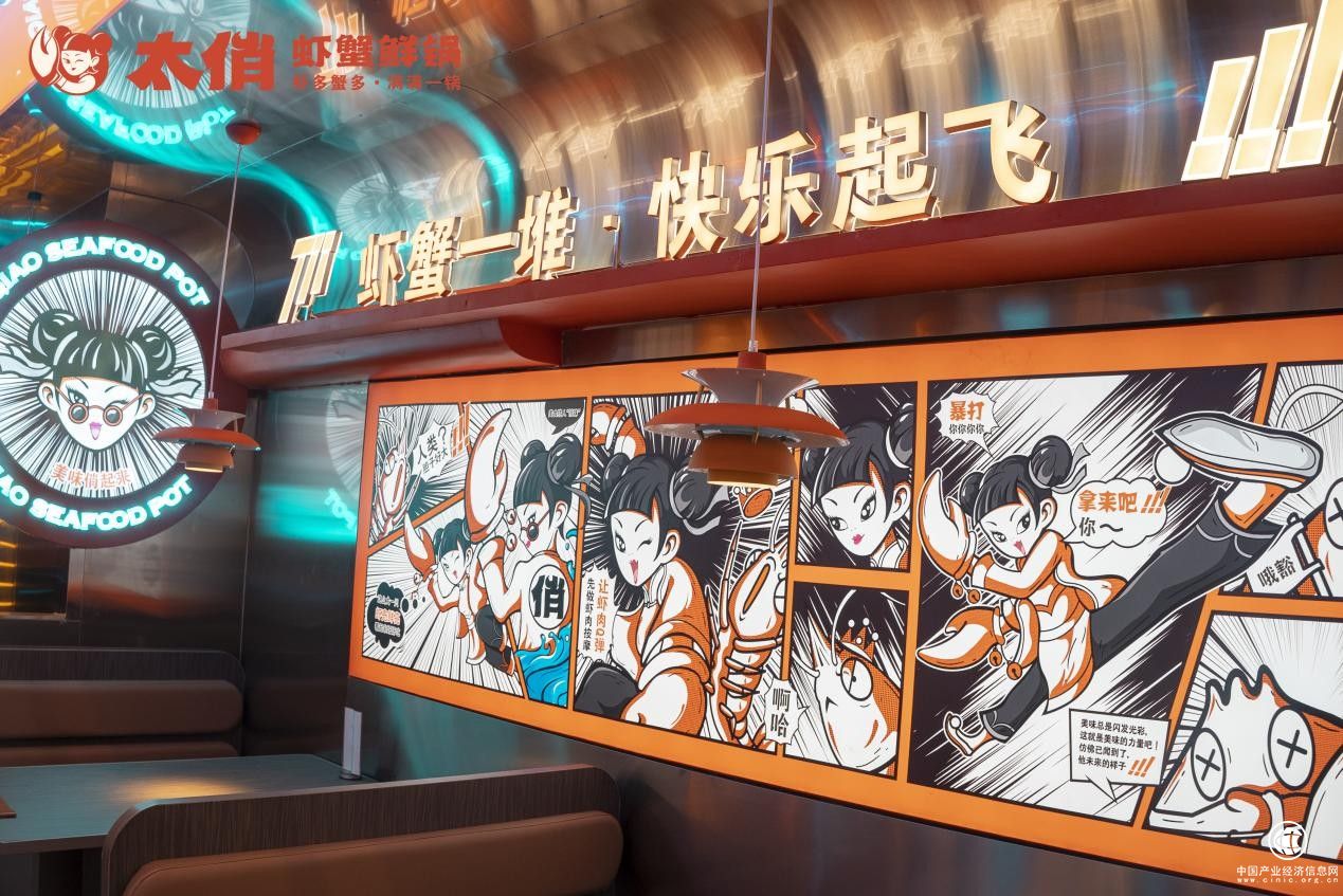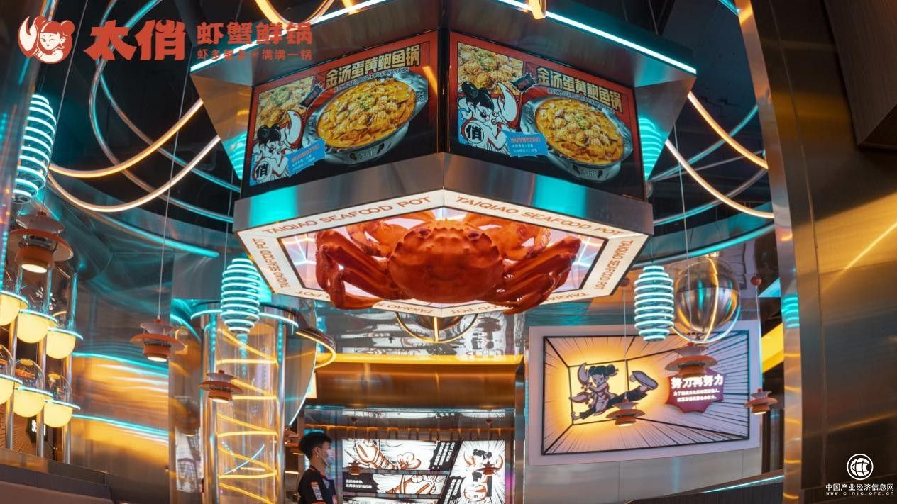 “虾多蟹多·满满一锅”。除产品的创新外,太俏为满足Z世代群体对用餐环境、用餐体验的需求,在空间视觉上极具颠覆性地以二次元和赛博朋克两种风格进行有机结合。以12月1日开业的太俏虾蟹鲜锅太古里首店为例,店内环境融入大量互动形式,将年轻、时尚、潮流的元素从内到外统一贯穿,打造超沉浸式的美食体验,使太俏成为年轻时尚群体的聚集地,海鲜爱好者的打卡圣地。