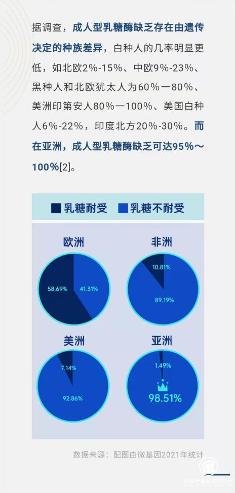 在微基因抽样调查的用户中,亚洲人群乳糖不耐受的比例高达98.5%。