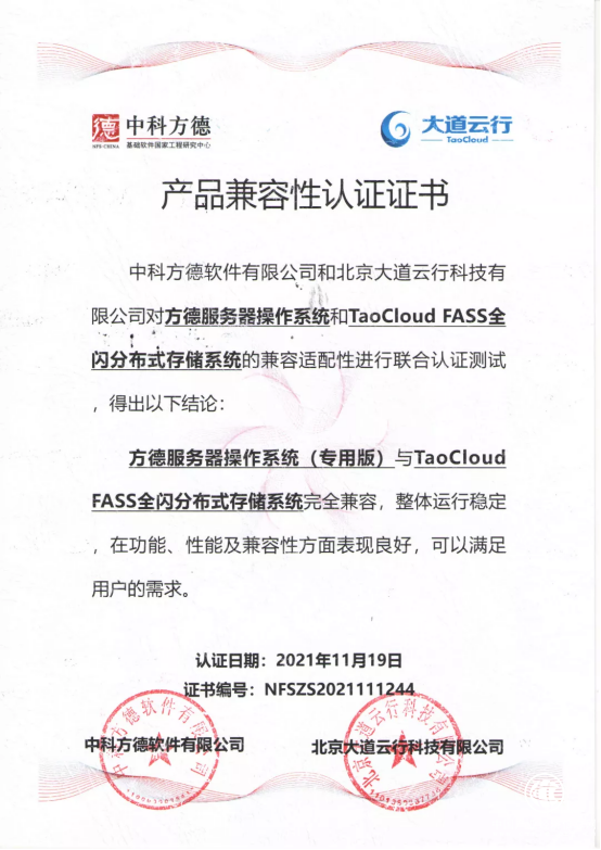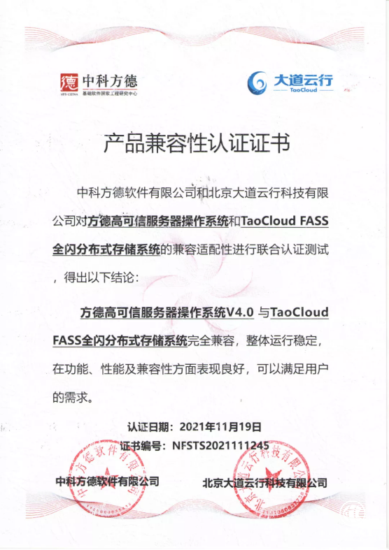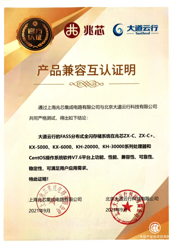 大道云行在信创领域互认证产品个数也达到了近百项。作为具有多年自主研发经验的SDS2.0全闪存储领军企业,早早围绕产业发展进行生态合作是大道云行谋划布局的点睛之笔。强强联合,互认推进,TaoCloud已经与众多国产操作系统、CPU、业务系统、整机及基础软件等产品,进行了兼容性互认证,助力国产化分布式存储的生态体系搭建。