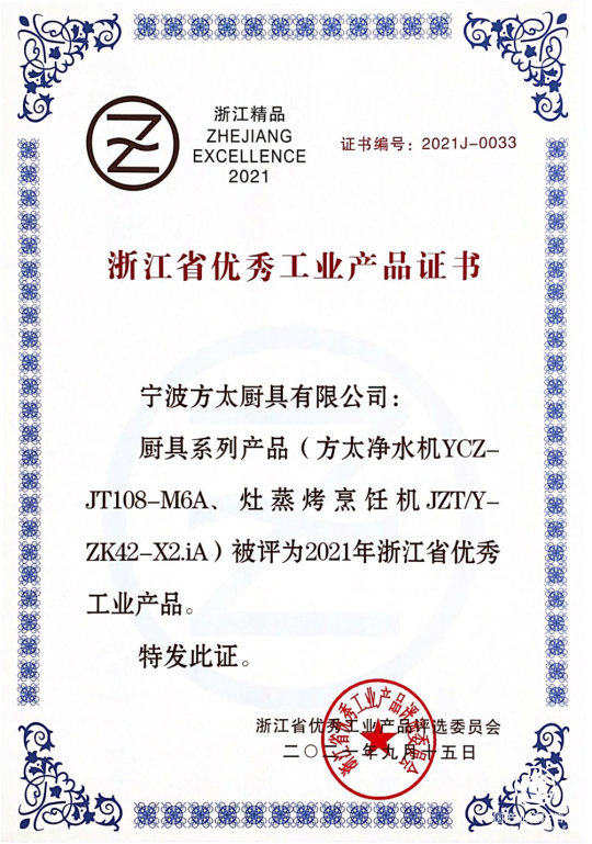日前,浙江省优秀工业产品评选委员会公布了2021年浙江省优秀工业大奖名单, 方太净水机M6A”荣获评“浙江省优秀工业产品”。作为净水领域突破性的产品,高擎技术创新大旗的方太母婴级净水机不但成为了浙江省优质工业产品的一张金名片,其倡导的健康饮水理念也获得了社会的广泛认可。