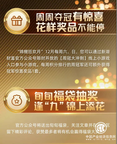 在12月“品牌升级锦鲤狂欢月”,新湖财富推出惊喜福利,参与新湖财富官方公众号限时开放的线上小游戏,花样奖品赢不停,周周有好礼,旬旬发福袋,持续关注,积极互动,还有机会赢得让人惊艳不已的“超级锦鲤”重磅福袋。