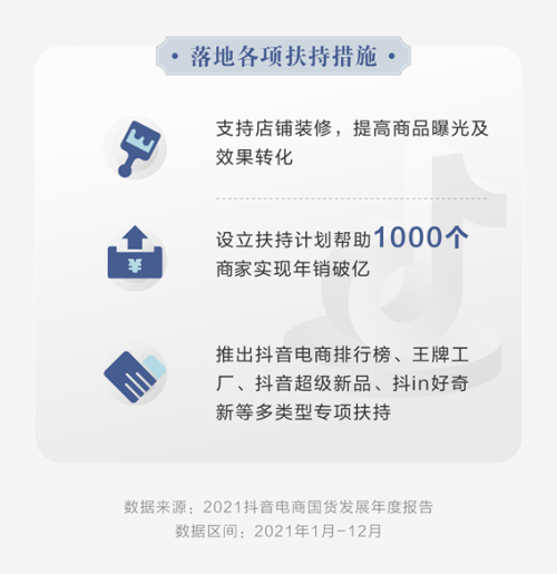 2021年,抖音电商坚持把助力国货发展放在重要位置,全面加强对国货品牌的扶持力度,国货品牌通过平台实现销量高速增长。报告显示,平台国货占有率高达89%,销量同比增长667%。