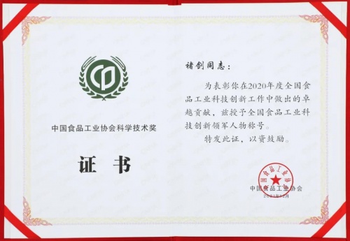 12月17-18日,以“科技·洞见未来”为主题的2021中国食品工业科技进步大会在郑州召开,会上颁发了“中国食品工业协会科学技术奖”。煌上煌承担的科研项目“江西特色酱卤禽肉制品的保鲜和冷链物流关键技术及其产品研发”获得了中国食品工业协会科学技术奖一等奖,煌上煌股份公司副董事长褚剑被授予“全国食品工业科技创新领军人物”荣誉称号。该奖项是煌上煌获得2018-2019年度中国食品工业协会科学技术特等奖后,2020年度再次获批,体现了煌上煌技术创新的持续性。
