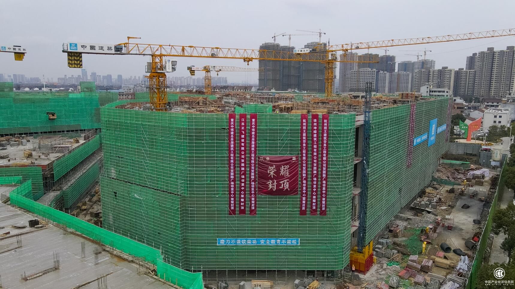 开新局保履约。2021年1月,项目管理团队跑步进场,春节全员坚守现场,发扬争先精神,克服了无锡文明城市创建、国家“双限”、疫情防控常态化等不利因素,全力推进工程建设,相继完成了售楼处开业、预售、商业区封顶等节点,为工程高效履约奠定了坚实基础。