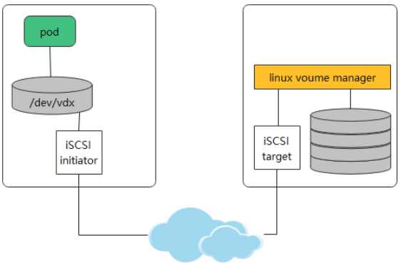 可以通过iSCSI将远程的磁盘分区映射到本地之后就可以像使用本地磁盘一样,将该远程盘进行格式化以及挂载操作,给容器使用。