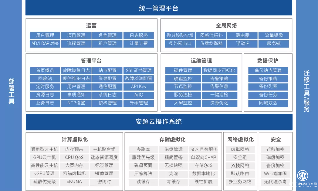 安超云操作系统是一套国内首款基于服务器架构的通用型云操作系统,具有软硬件解耦、应用优化、支持混合业务负载等特点。为企业提供高性能、高可用、高效率及易于安装维护的IT基础设施平台,加速政府和企业上云进程,为推动企业数字化转型提供完整的一站式企业上云的云操作系统平台和生态解决方案。该产品于2021年底正式发布1.5版本,本次升级发布,安超云操作系统展现出了“好用易用”的产品优势,其独特的业务优化技术、数据安全技术、运维管理技术的大幅提升,为广大用户进一步实现贴近用户业务、简化用户运维、保障数据安全的目标。