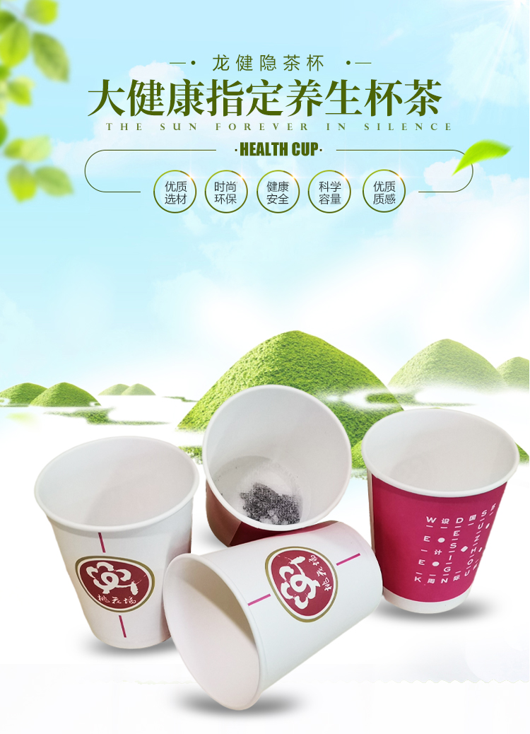 龙健养生杯茶是利用高档食品级纸杯及可降解过滤膜的热封生产工艺,精选优质好茶、花草茶、中药材和好的配方,应用隐茶杯专利设备和技术生产成杯装茶,让复杂的配方养生茶简单泡饮,更方便、更快捷、更卫生。隐茶杯的创新发明,为农村花草茶、中药材和茶产业发展带来了新的生机,让这些优质农产品通过创新的杯装快饮方式走近城市和消费者,有效的带动了当地大健康产业的创新发展。