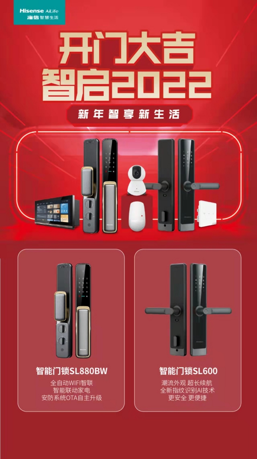 据了解,“开门大吉 智启2022”活动是海信全品类面向终端消费者的新年首销举措,海信智慧生再次释放了其智能家居产品强大的实力,推出了智能门锁系列产品及智启全屋套餐。其中,智启全屋套餐是以智能中控屏HO980W12为核心,搭配各类智能控制终端的家居类产品套装,为用户快速体验家庭智能化提供了可能。