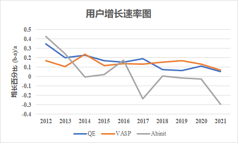 图2. 几个主要的第一性原理软件使用人数增长率比较