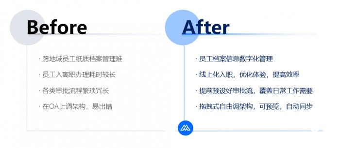 以前,和很多公司一样,众合云科入职的新员工,需要在入职当天填写各种纸质信息登记表,而 HR需要手动把这些手写的信息录入到后台,光是这个信息填写与录入就要耗时一个多小时。HR 的工作效率需要提升,新员工的入职体验需要改善。