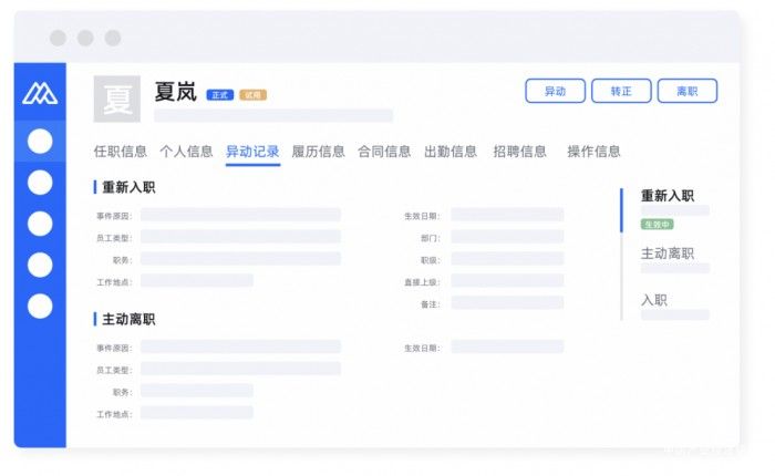 现在,众合云科通过Moka People系统,实现了员工档案信息的全面线上化管理,跨地域也能方便进行集中化管理。在Moka People系统中,每一位员工的入转调离全生命周期信息都清晰可见,不仅方便了HR团队的工作,也可以满足业务团队的各种需求。