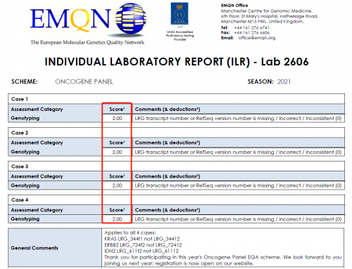 满分通过2021年EMQN ONCOGENE PANEL