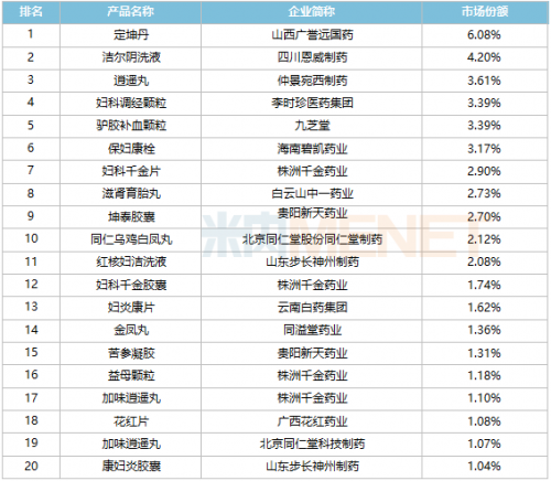 2021中国城市实体药店妇科中成药品牌TOP20