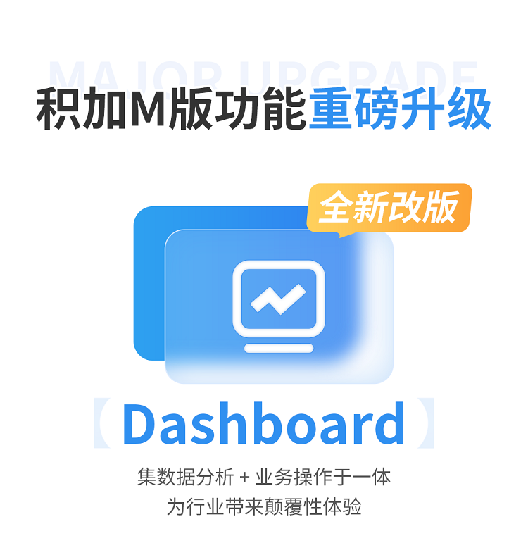 积加M版Dashboard,区别于市面上任意一款数据工具,从全新的运营视角出发,实现数据分析和业务操作一体化,聚焦于为运营打造最极致的体验感。同时业务数据、资产数据实时更新,支持老板们快速看数,高效决策。这样一款集体验感和操作性为一体的Dashboard,将成为行业的新路标。