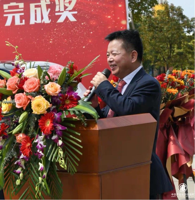 在主持人的指引下,台实副总经理邓景峰为营销三部彭良进、营销四部江广军、营销五部冯兴江颁发绶带,邓董为三位销冠颁发钥匙。获奖的三位销冠热情高涨,表示未来将进一步紧跟企业前进的步伐,不辜负公司的信任,助力品牌迈上新的台阶!