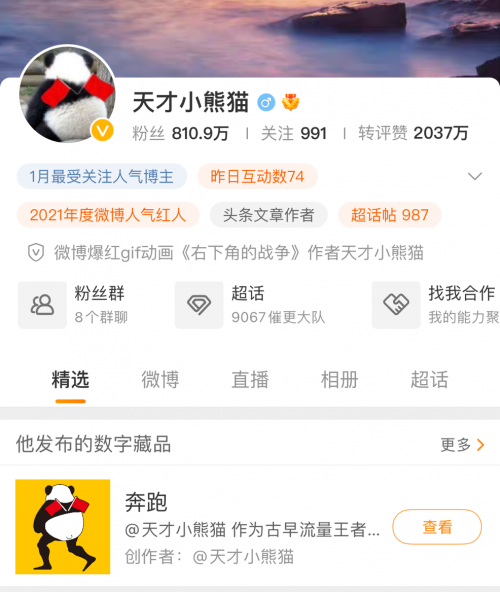 与此同时,微博作为社交媒体平台,兼具私域和公域属性。创作者通过经营个人微博账号,与粉丝进行互动,能够不断积累社交资产;而开放式广场能够帮助创作者打破圈层限制,实现出圈,形成全网影响力。此次双方的合作,大大拓展了创作者内容作品的社交属性,一方面,将内容铸造为数字藏品使创作者的变现方式更加多元,另一方面创作者可以围绕数字藏品与其他创作者或藏家进行社交与对话,创作者因作品产生的社交价值得到确认。而藏家则可以通过收藏、展示数字藏品来支持喜爱的内容创作者,彰显其对某领域、某文化圈层的“身份”。