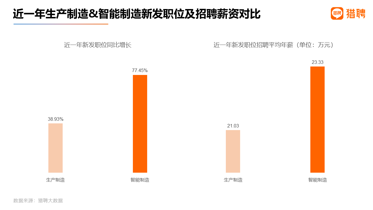 2、智能制造:新发职位同比增长为77.45%,招聘平均年薪为23.33万元