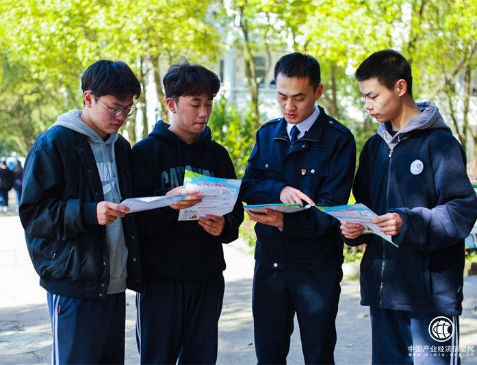 图为安吉县烟草专卖局工作人员正在开展校园普法宣传。王剑摄。