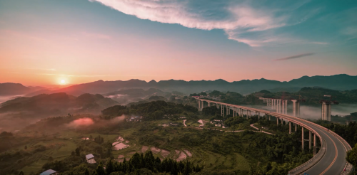 镜头拉远,彭亮方兴眺望建设中的高速公路,彭亮向方兴讲述自己放弃更好的发展机会,投身家乡基础设施建设的选择,初心之路,已然在心。