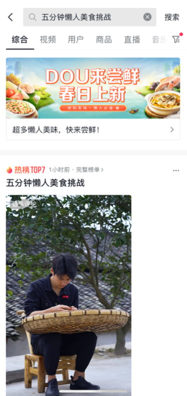 通过短视频提升消费者对优质预制菜的认知,开展以#五分钟懒人美食挑战为话题的短视频挑战赛,话题不断升温,并拿下话题榜单一位的好成绩,吸引更多商家、用户关注。