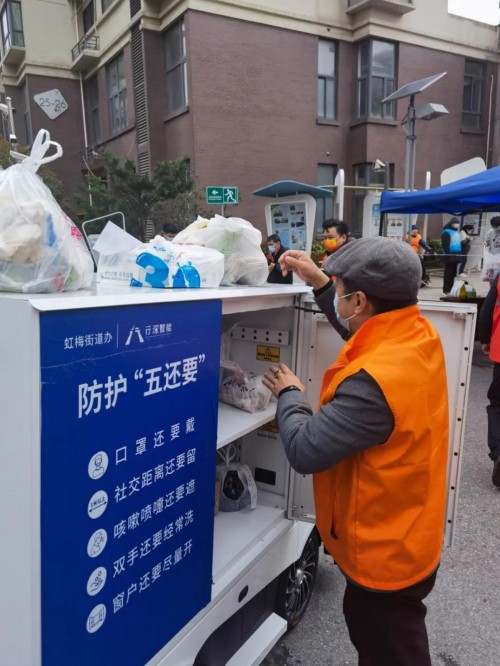 本轮疫情发生以后,行深智能得知闵行区江川路街道的物资运输困难后,迅速响应,派出防疫无人送餐车,投入到疫情防控物资无人配送工作中。