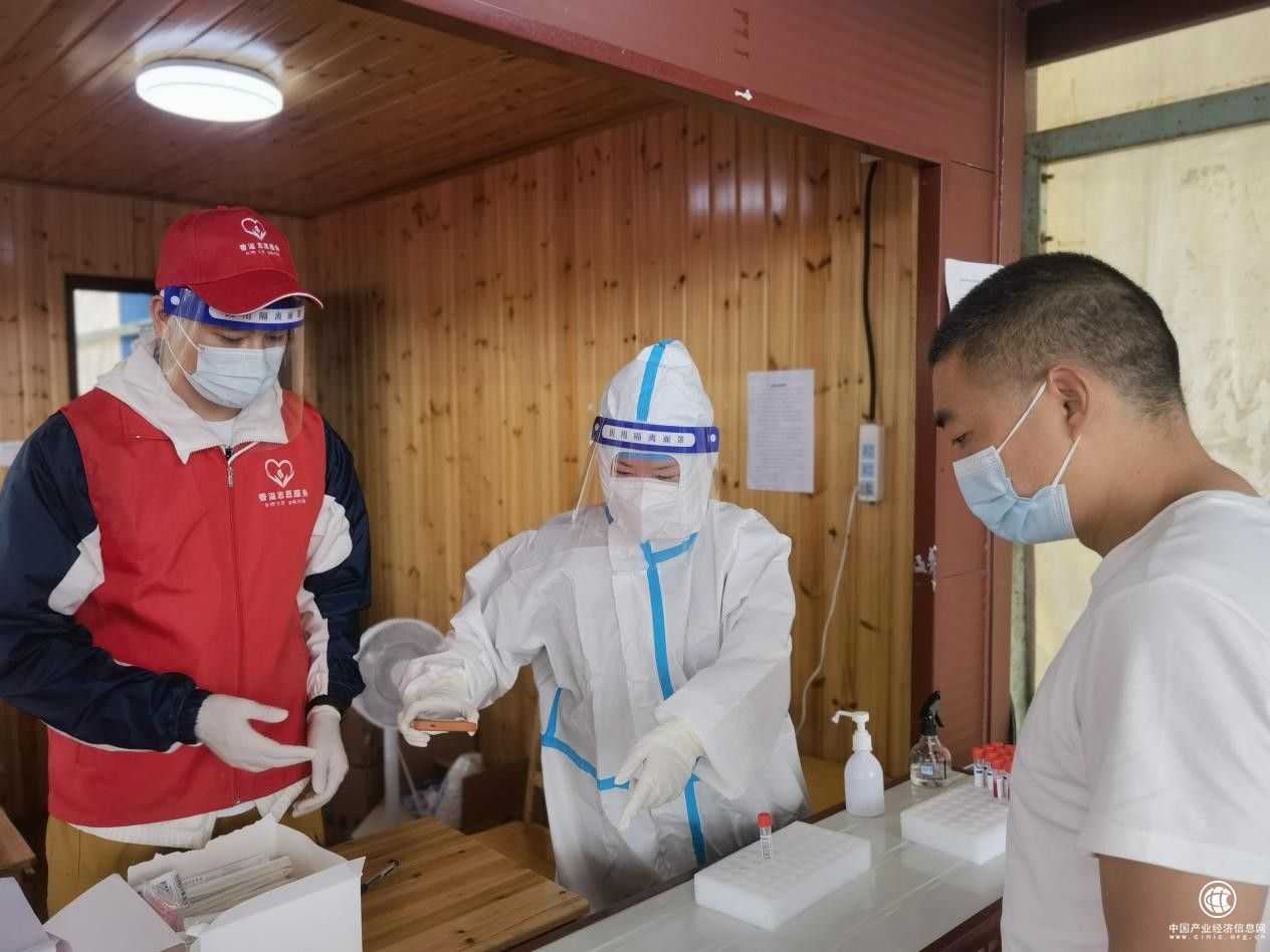 图为“香溢”志愿者协助医护人员进行核酸检测