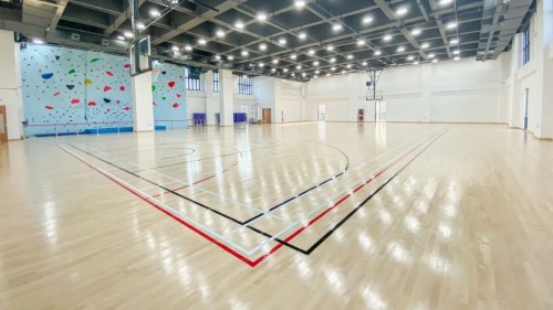 篮球馆采用国际篮联FIBA认证的博纳地板漆,无论摩擦力、冲击吸收率、球回弹力都达到了赛级标准。场内还有电动分割幕布,快速实现篮球、羽毛球、网球、排球多球场灵活切换。