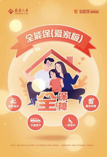 4月18日,“泰康全能保(爱家版)保险产品计划”(简称“全能保(爱家版)”,下同)隆重上市。推出四大特惠,让客户尽享意外、重疾、生存三大全能保障。