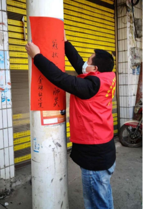 零售户志愿者粘贴社区防疫宣传语