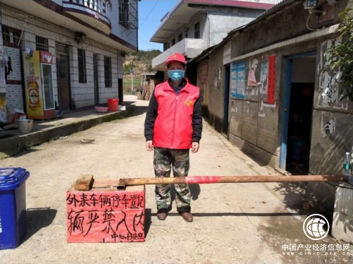 零售户志愿者在村级卡点值班登记排查外来车辆
