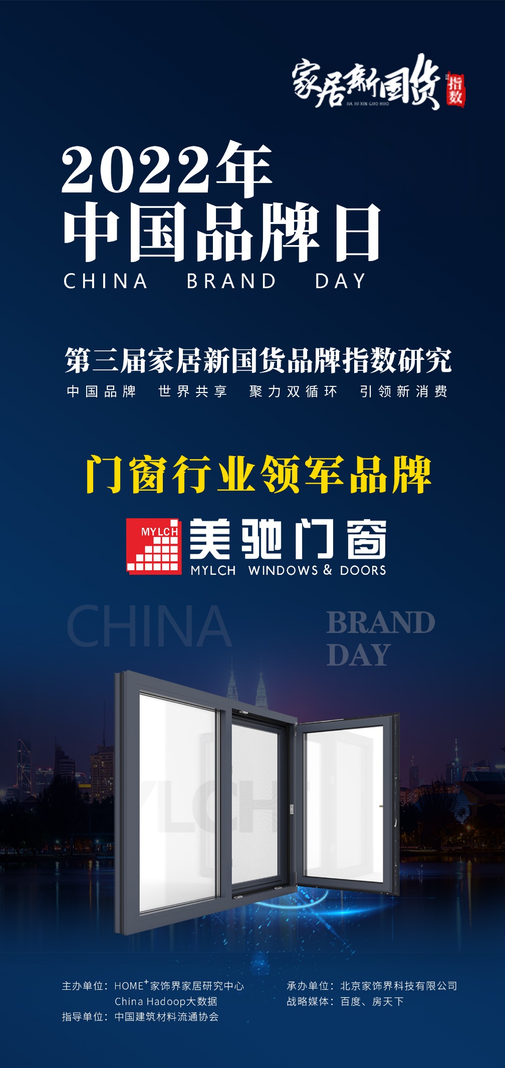 2022年5月10日,迎来第六个中国品牌日,由HOME家饰界、China Hadoop大数据联合主办,中国建筑材料流通协会指导的2022年第三届家居新国货品牌指数研究报告隆重发布。美驰门窗再次荣获家居新国货门窗行业领军品牌称号和国货之光称号。美驰门窗始终坚持“用心做好一件事”,凭借多年高品质产品与市场口碑,已经连续三年荣获门窗行业领军品牌称号。