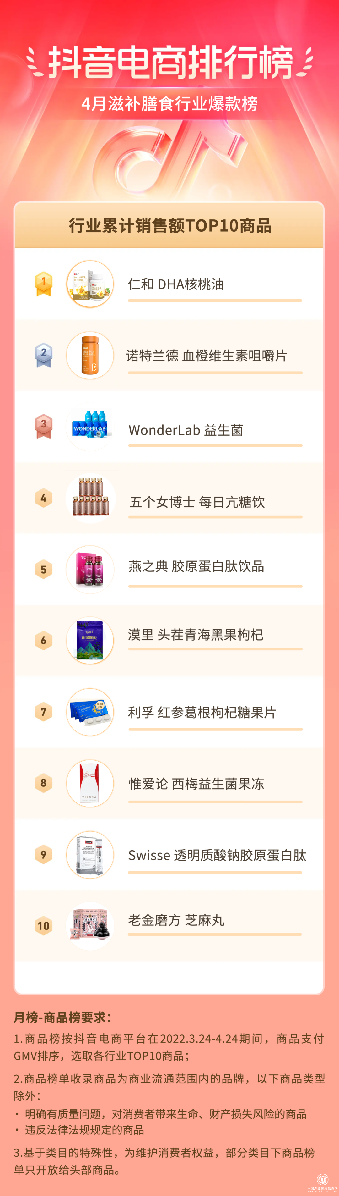 “药食同源”的哲学,正渗透于4月抖音电商排行榜中。在食品饮料商品榜中,有抗氧化成分的江中蓝莓叶黄素酯软糖、补肝益肾的江巢桑葚干、利于消化的五谷磨房核桃芝麻黑豆粉赢得了消费者的青睐。在品牌榜,认养一头牛、伊利、良品铺子、江中,这些产品线广泛的经典大牌也位居其中。