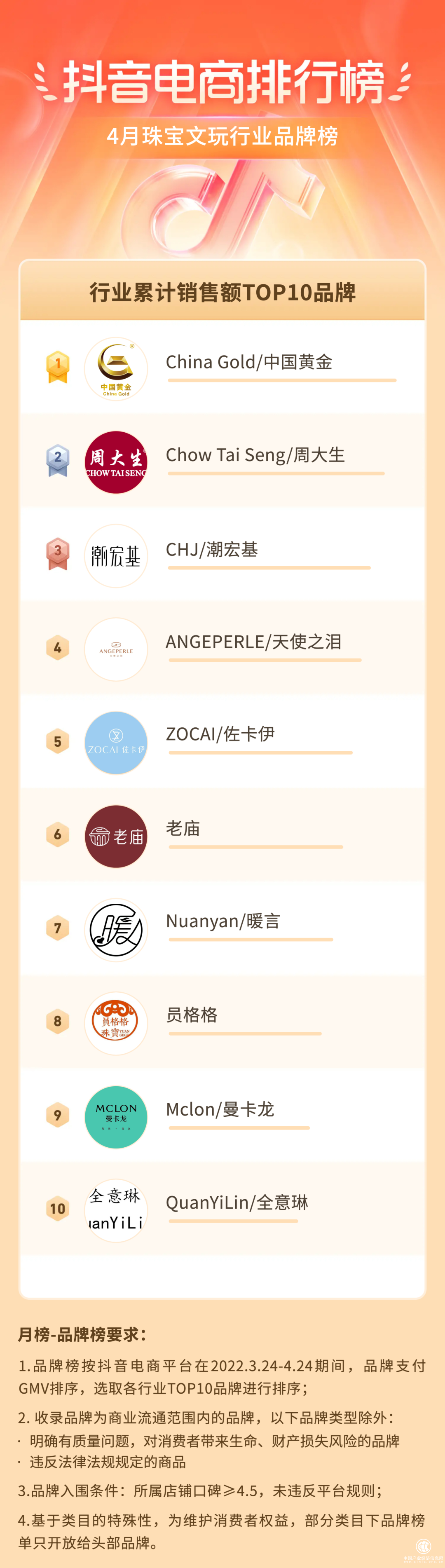 日前,抖音电商排行榜4月榜单正式发布。榜单涵盖抖音电商食品饮料、亲子生活、珠宝、个护家清等13个行业赛道,开设商品爆款榜、品牌榜、店铺榜三大热榜,对4月表现突出品牌、商家、产品进行曝光的同时,助力品牌商家洞察消费市场趋势与消费者偏好。