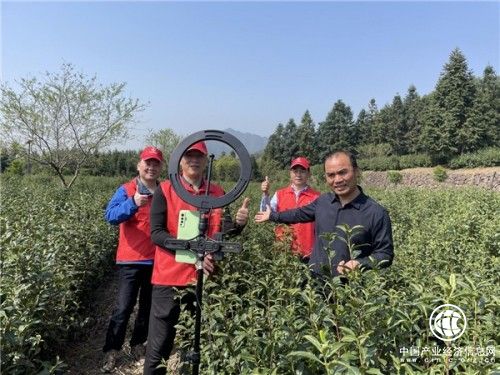 图为潘丽辉和“香溢”志愿者一起通过直播为茶农宣传茶叶。(蒋芹铭摄)