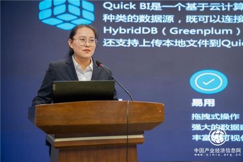 图为徐海韵在介绍Quick BI工具使用方法。(张弛摄)