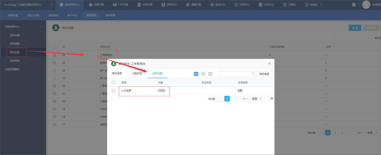 通过工单岗维护,建立矩阵,维护不同部门对应的工单岗人员。