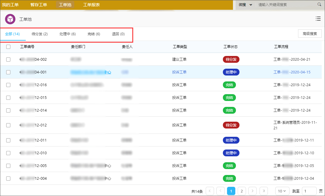 根据流程流转,提交之后生成工单池数据,然后再根据不同节点提交进行状态更新,最终通过流程实时进行工单池数据更新。