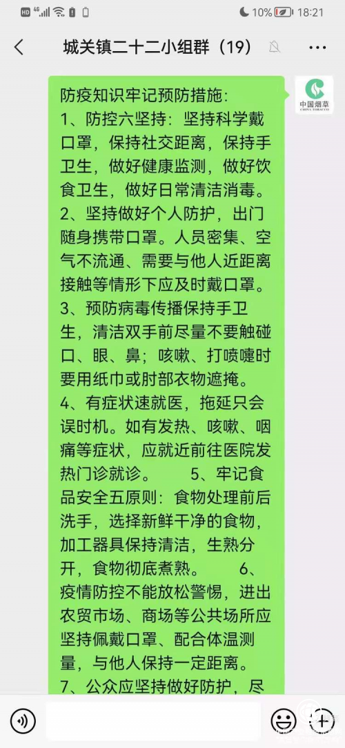 疫情期间,濮阳县烟草分公司全体客户经理坚守岗位,不断在市场中履责、不断与商户沟通、不断为社会服务,客户经理通过微信、电话等方式开展区域市场调查工作,全面了解零售商户市场经营状态及交通管制情况等信息,及时了解扫码户营业状态,全面掌握商户经营动态,为下一步经营指导及工作安排提供信息支撑。客户经理时刻关注疫情变化情况,保质保量完成岗位工作的同时,及时关注卷烟订购和配送的各项工作安排,提前与商户做好沟通解释工作。客户经理通过电话问候、微信推送等方式,向商户宣传疫情防控知识,引导商户做好店面消毒和个人防护。(刘金笛)