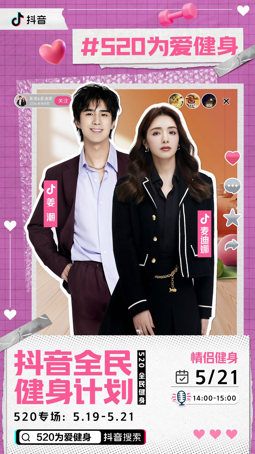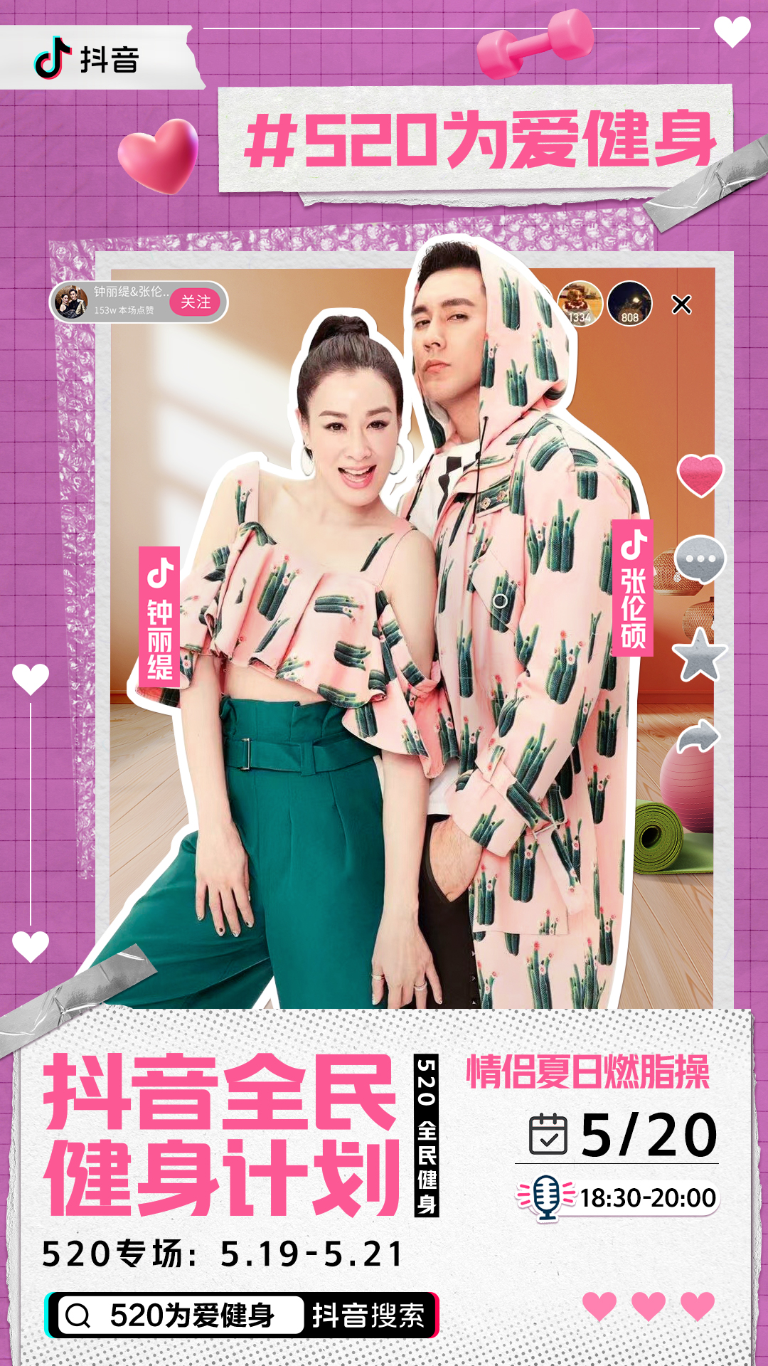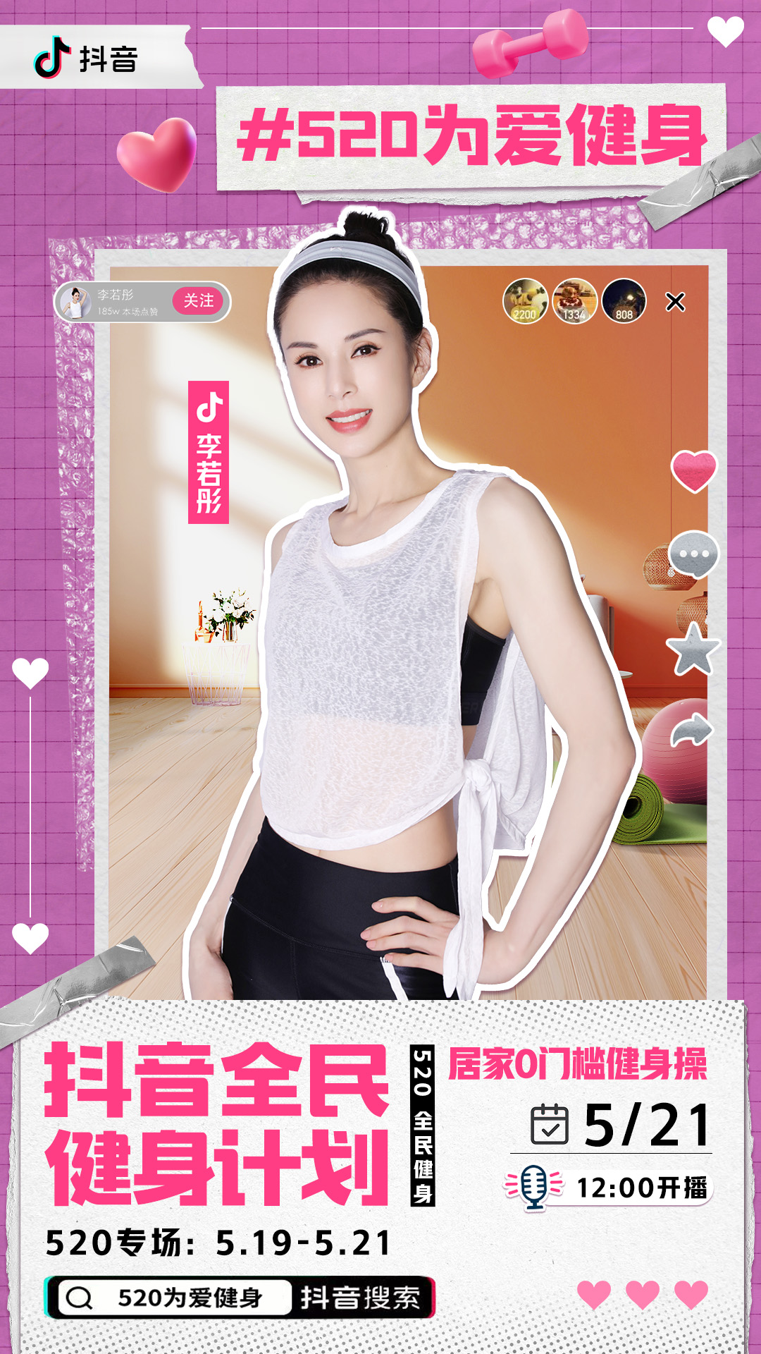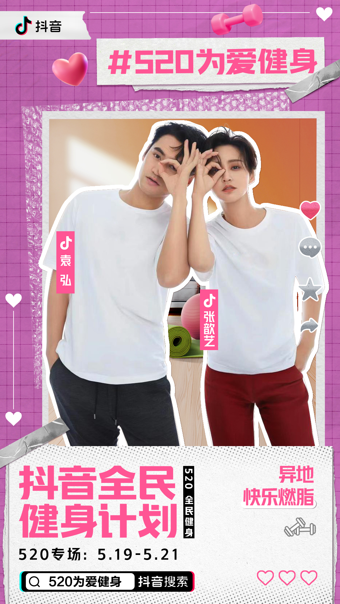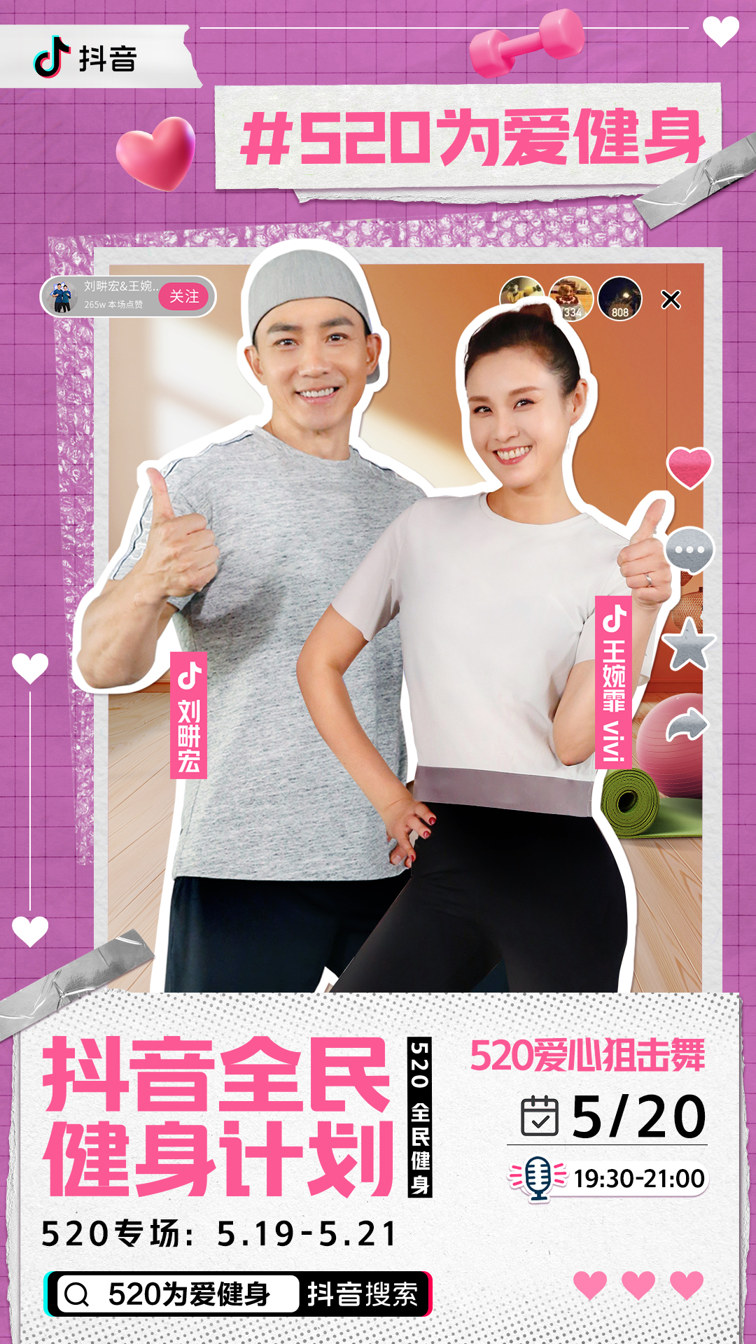 抖音的“520为爱健身”活动正是“全民健身计划”的升级玩法,更多领域明星cp健身互动、更多元化专业健身课程、更全面的健身知识科普,必将再度掀起全民直播健身热潮,让520不再仅是属于情侣的节日,让健身成为悦己新方式!