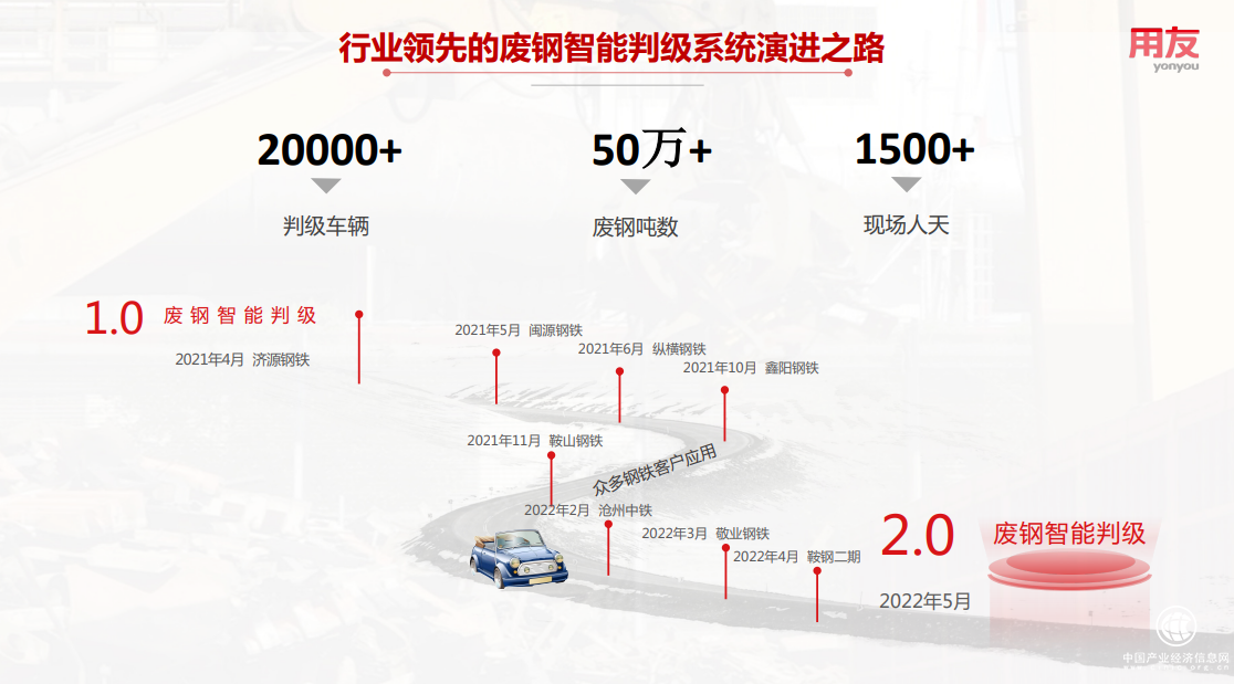 资料显示,用友BIP废钢智能判级系统已服务鞍钢集团、济源钢铁、纵横钢铁、敬业钢铁、闽源钢铁、鑫阳钢铁、沧州中铁等钢铁行业领军企业,累计废钢判级20000多车,带来显著的经济效益。