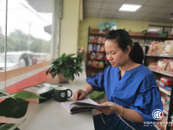 老板娘黄敏看着小店盈利而欢笑