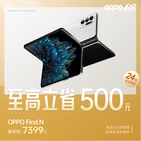 对于想要体验折叠屏手机的用户,OPPO首款折叠屏旗舰Find N也是给出了足够的诚意,最高立减500元,到手价仅7399元起,并且最高可享24期分期免息,还送价值816元2T云空间和官方原装保护壳。这样的优惠力度堪称空前。当然,OPPO Find N所展现出来的产品实力,也会让你物超所值。