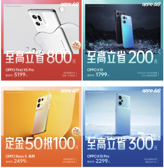 除了Find N折叠屏,这次的618 OPPO还有多款热门机型参与了进来。比如:当家旗舰OPPO Find X5 Pro,一体化此次机身+双芯影像,这次立省800后最低5199即可入手。喜欢游戏的可以看看2k价位的OPPO K10系列,爆款处理器和续航屏幕全面升级,这次618 最高立省300,最低入手价仅为1799。